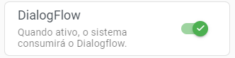 DialogFlow: Ative ou desative a interação com DialogFlow para o atendimento. Essa opção estará disponível caso a interação esteja ativa nas configurações gerais. Para saber mais, leia a seção Configurações e Canais da central de ajuda.