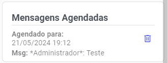 | Agendamento de Mensagem: Realize o agendamento de uma mensagem individual para esse contato. Essa mensagem pode conter áudio, arquivo, emoji, etc. | ![]() |