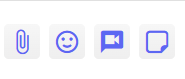 Na parte inferior da tela é onde seus usuários vão se comunicar com o cliente. À esquerda se encontram os botões de: envio de arquivo, emoji, link para vídeo chamada e figurinhas.