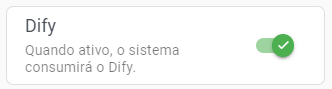 Dify: Ative ou desative a interação com Dify para o atendimento. Essa opção estará disponível caso a interação esteja ativa nas configurações gerais. Para saber mais, leia a seção Configurações e Canais da central de ajuda.