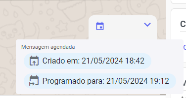 Mensagens Agendadas: Você pode visualizar quantas mensagens foram agendadas através do botão de agendamento. Além disso é possível ver o conteúdo, data e horário de envio. Para saber mais, leia a seção Agendamentos da central de ajuda.