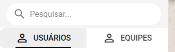 Logo abaixo estão os campos de Pesquisa, as abas de Usuários e Equipes. As abas servem para separar as conversas privadas das feitas nos canais da equipe.